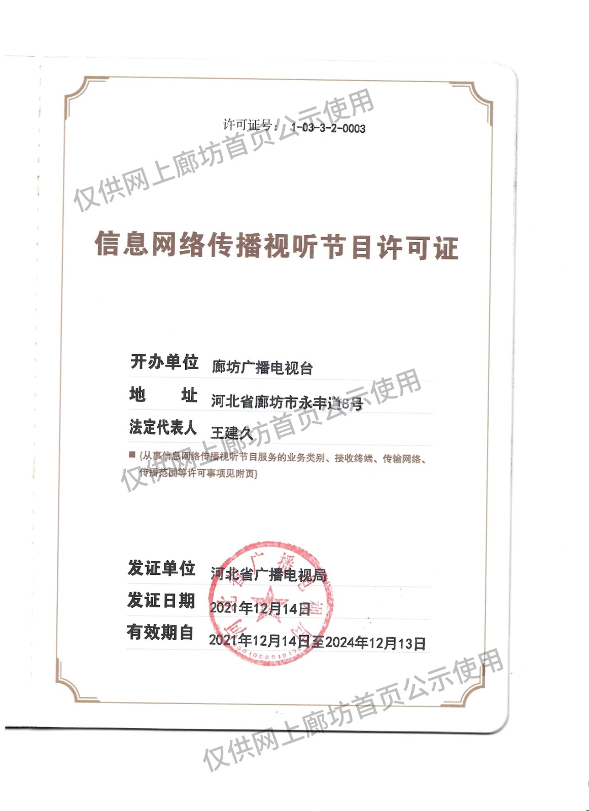 ICP備案許可證號(hào):冀ICP備14011812號(hào) 主辦單位名稱(chēng):廊坊廣播電視臺(tái)