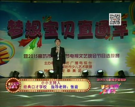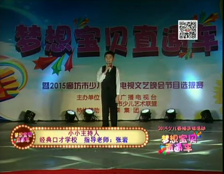 夢想寶貝直通車暨2015年廊坊市少兒春晚優(yōu)秀節(jié)目選拔活動(dòng)由廊坊廣播電視臺(tái)主辦,廊坊市少兒藝術(shù)聯(lián)盟承辦。
