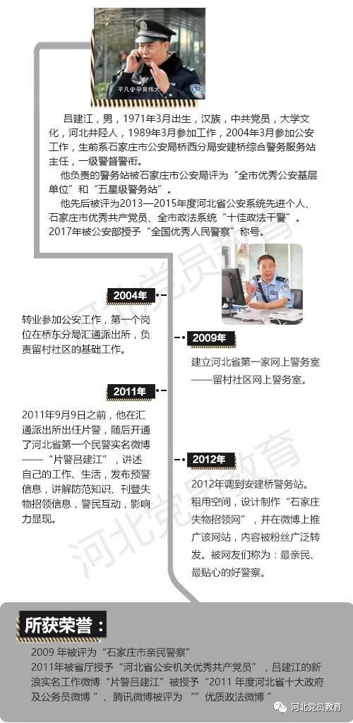 全國(guó)優(yōu)秀人民警察,石家莊市安建橋警務(wù)站主任呂建江2017年12月1日因病去世。