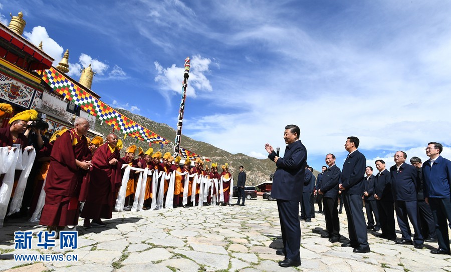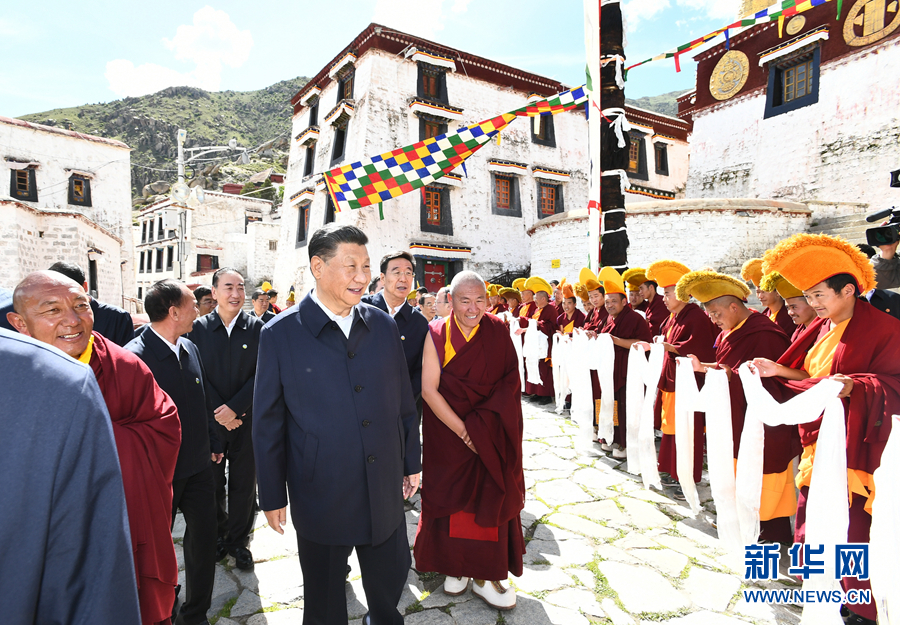 7月21日至23日,中共中央總書記、國家主席、中央軍委主席習近平來到西藏,祝賀西藏和平解放70周年,看望慰問西藏各族干部群眾。這是22日下午,習近平在位于拉薩西郊的哲蚌寺考察。 新華社記者 謝環(huán)馳 攝