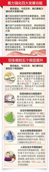 兩大奮斗目標(biāo)、四大發(fā)展功能和五個(gè)明顯提升,報(bào)告對(duì)今后五年奮斗目標(biāo)和相關(guān)指標(biāo)的設(shè)置,鼓舞人心。