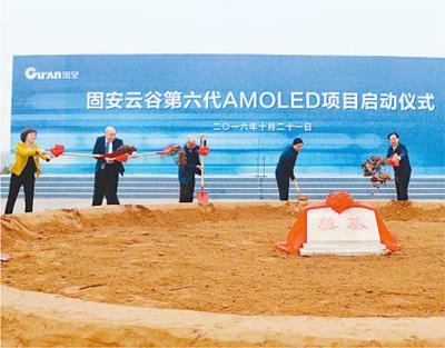固安云谷第六代AMOLED項(xiàng)目總投資262億元,計(jì)劃于2018年6月投產(chǎn),設(shè)計(jì)每月投片能力為3萬片。圖為項(xiàng)目啟動現(xiàn)場。資料圖片