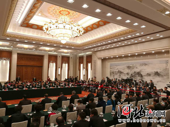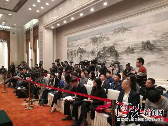 3月7日上午,十二屆全國人大五次會議河北代表團(tuán)在人民大會堂新聞發(fā)布廳舉行全體會議,并對中外媒體開放。開放日活動現(xiàn)場。