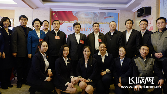 趙克志、張慶偉在2017全國兩會長城網(wǎng)全媒體“中央廚房”指揮中心,看望參加全國兩會采訪報道的新聞工作者,并與大家合影留念。長城網(wǎng) 姚杰 攝