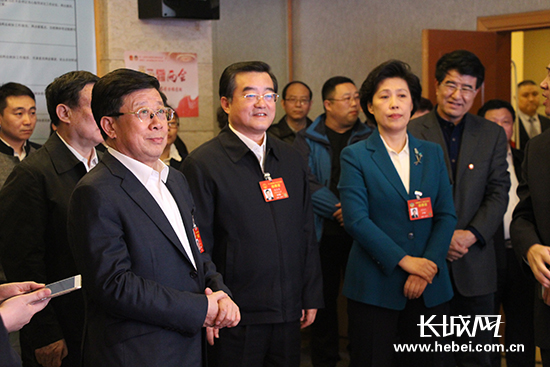 3月9日下午,河北省委書記、省人大常委會主任趙克志,省委副書記、省長張慶偉看望慰問全國兩會期間赴京采訪的河北省新聞工作者。長城網(wǎng) 賀宏偉 攝