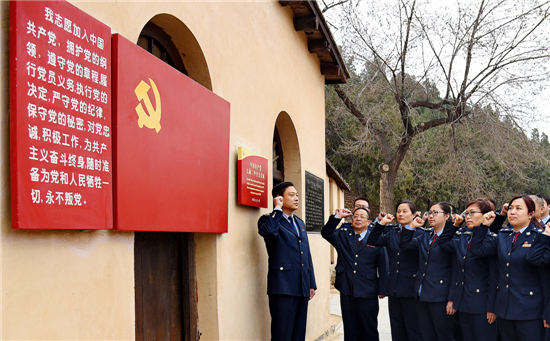 3月23日趕考日前夕,河北省多地黨員干部來到西柏坡重溫入黨誓詞,弘揚趕考精神。 記者趙威攝