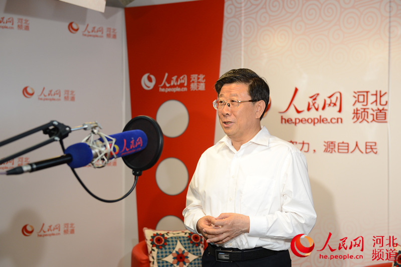 圖為趙克志書記在人民網(wǎng)河北頻道演播室向人民日報讀者和人民網(wǎng)網(wǎng)友問好。張夢琪 攝