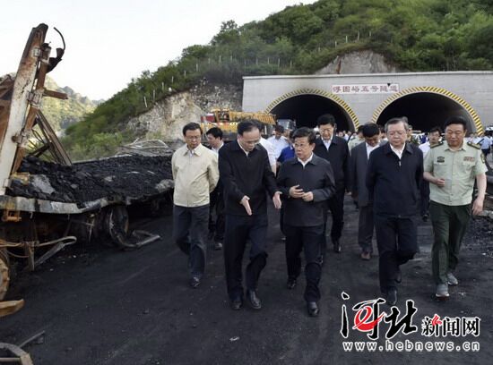 趙克志許勤等在事故現(xiàn)場指導(dǎo)處置工作。 記者郭昭攝