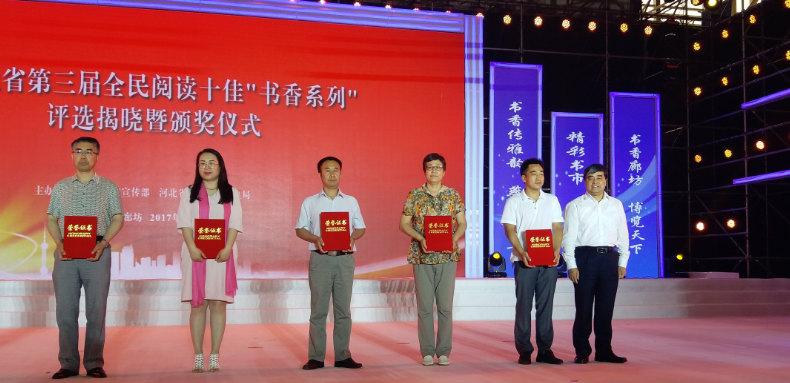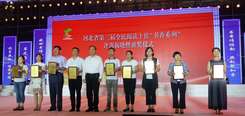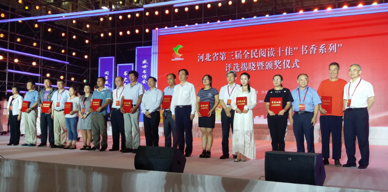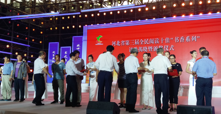 5月31日下午,由河北省委宣傳部、河北省新聞出版廣電局、河北省全民閱讀活動組委會辦公室組織開展的河北省第三屆全民閱讀十佳“書香系列”評選揭曉暨頒獎儀式,在河北省廊坊市國際會展中心B館第27屆全國圖書交易博覽會開幕式場地成功舉辦。