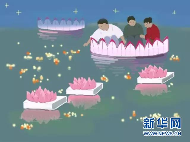 姑娘們最喜歡放荷燈,荷燈的精美表現(xiàn)出了她們巧奪天工的手藝。新華網(wǎng)原創(chuàng)手繪
