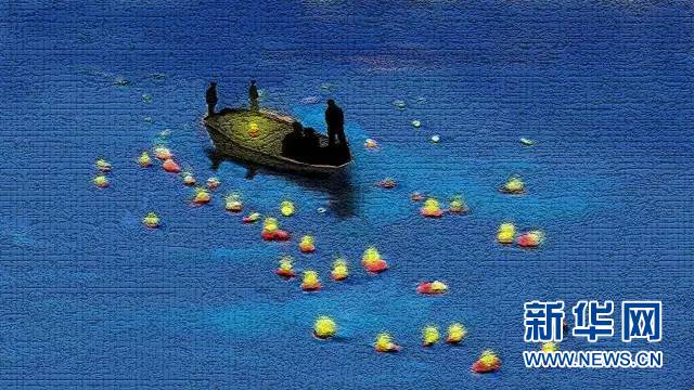 此時此刻,白洋淀是燈的淀泊,燈的世界。新華網(wǎng)原創(chuàng)手繪