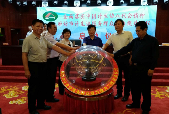 張春燕宣布“全面落實中國計生協(xié)八代會精神廊坊市計生協(xié)服務群眾能力提升工程”正式啟動,王景水、張春燕等領導共同按動啟動球。啟動儀式后,王景水進行專題授課。(董坤)