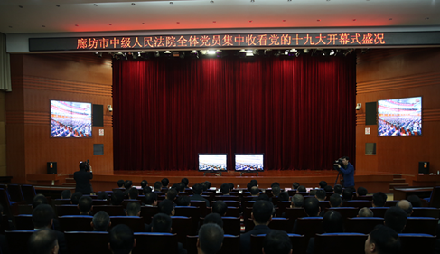 10月18日,中國(guó)共產(chǎn)黨第十九次全國(guó)代表大會(huì)在北京隆重召開(kāi)。上午九時(shí),河北省廊坊市中級(jí)人民法院199名在職黨員齊聚中院大審判廳,集中收看黨的十九大開(kāi)幕式盛況,認(rèn)真聆聽(tīng)習(xí)近平總書(shū)記在中國(guó)共產(chǎn)黨第十九次全國(guó)代表大會(huì)上所作的報(bào)告。另有64名離退休黨員在家中收聽(tīng)收看黨的十九大開(kāi)幕式盛況。