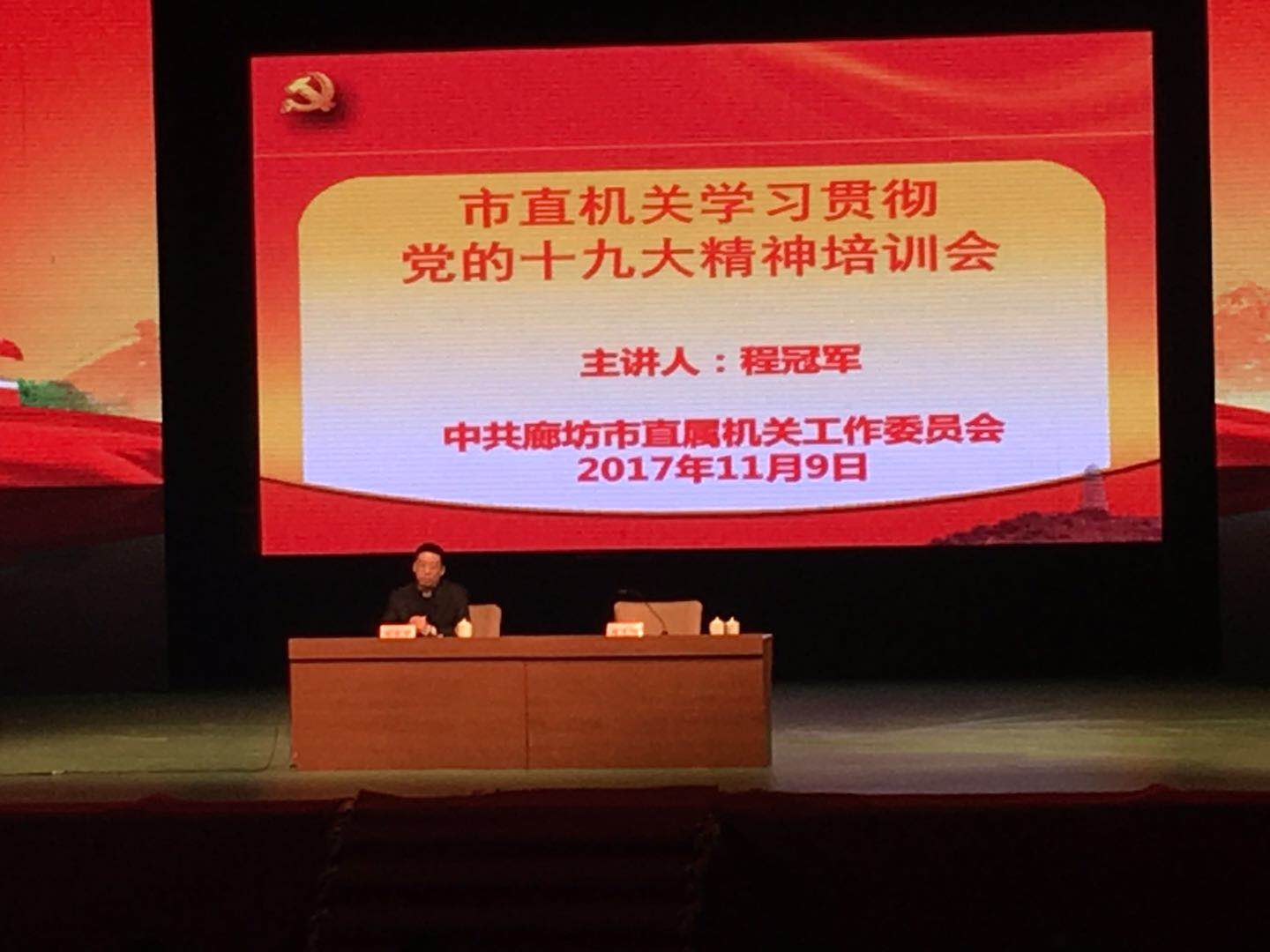 11月9日, 市直機(jī)關(guān)工委舉辦學(xué)習(xí)貫徹黨的十九大精神專題培訓(xùn)會。市直各機(jī)關(guān)黨委書記、專職副書記(黨辦室主任),市直機(jī)關(guān)各單位黨委所屬黨總支、黨支部書記,理論骨干1000多人參加此次培訓(xùn)會。