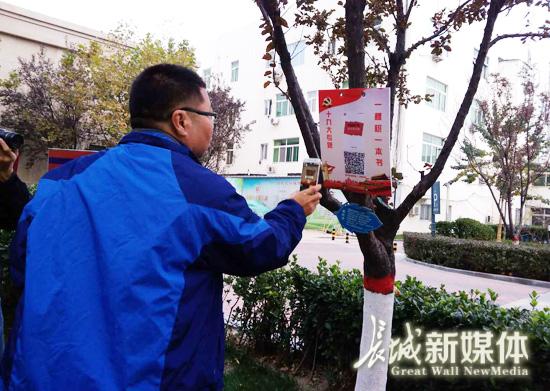 每一棵樹上掛著一個二維碼,掃一掃便可免費(fèi)閱讀十九大專題書籍,這樣的新鮮事發(fā)生在廊坊市安次區(qū)億合社區(qū)。