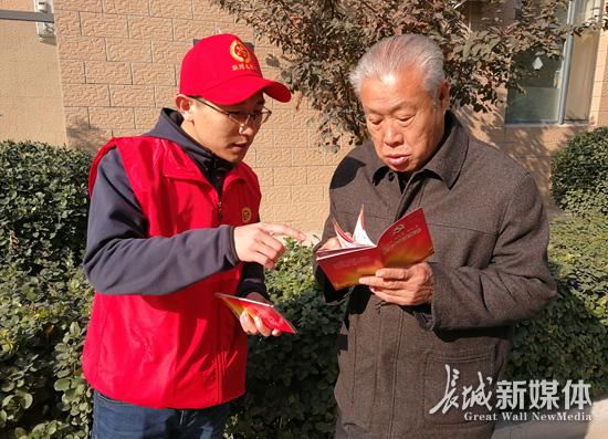 11月4日,廊坊市直、中省直駐廊各機(jī)關(guān)、企事業(yè)單位的萬名黨員志愿者深入到全市各個街道、社區(qū)、廣場開展“星期六文明行動”。黨員志愿者們一邊開展志愿服務(wù),一邊將《圖解十九大報告》口袋書以及十九大精神學(xué)習(xí)資料送到千家萬戶。這種星期六宣講活動已成為近期該市宣傳十九大精神的新常態(tài)。