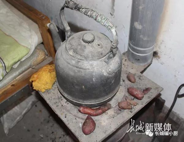 張軍芳老人家的爐子上放著平日里吃的的窩頭和紅薯。