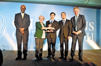 頒發(fā)“地球衛(wèi)士獎”是聯(lián)合國第三屆環(huán)境大會的一個重要環(huán)節(jié)。該獎創(chuàng)立于2004年,每年評選一次,頒發(fā)給世界各地在環(huán)境領(lǐng)域有杰出貢獻的個人或組織。在今年的“地球衛(wèi)士獎”各個獎項中,中國摩拜單車公司獲得“商界卓識獎”,中國億利資源集團董事長王文彪獲得“終身成就獎”。
