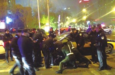 出租車司機稱,在王府井西塘子胡同附近,一名蒙面男子拿著槍趕走了車內乘客,脅迫他開車。車行駛了2公里左右,到達金寶街時,民警將蒙面男子抓獲。