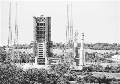海南文昌航天發(fā)射場發(fā)射塔架與海相鄰。 |