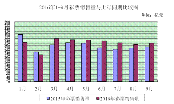 1月至9月累計,全國共銷售彩票2897.38億元,同比增加178.39億元,增長6.6%。其中,福利彩票機構(gòu)銷售1513.40億元,同比增加23.96億元,增長1.6%;體育彩票機構(gòu)銷售1383.99億元,同比增加154.43億元,增長12.6%。