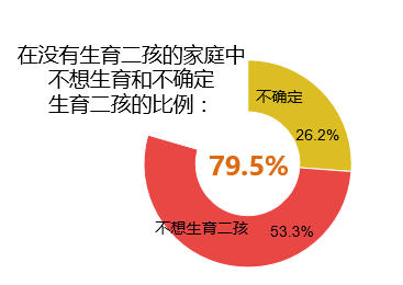 報告顯示,一半以上的一孩家庭沒有生育二孩的意愿。在發(fā)達省份和城市家庭中生育二孩的意愿相對較低。從地區(qū)來看,北京和東部省份不想生育二孩的家庭比例最高,均為62%。從家庭類型來看,城市普通家庭已有二孩的比例最低,為29.6%,不想生育二孩的比例為55.9%。各類家庭中有兩成左右尚不確定是否生育二孩。