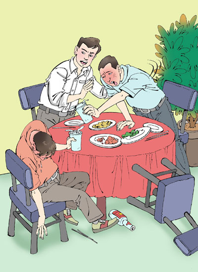 劉冰今年24歲,雖說年紀(jì)不大,也已久經(jīng)酒場。“大學(xué)里常和朋友兄弟一起聚餐,男孩子們聚在一起總要喝上幾杯,那時候就感受到勸酒的厲害。”劉冰表示,大學(xué)里的勸酒都是以感情為由沒辦法拒絕,“那會兒脾氣大,還會因為勸酒吵架。”