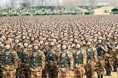 1月3日上午,中央軍委隆重舉行2018年開(kāi)訓(xùn)動(dòng)員大會(huì),習(xí)近平向全軍發(fā)布訓(xùn)令。這是主會(huì)場(chǎng)部隊(duì)官兵宣誓。