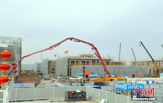 圖為雄安新區(qū)雄安市民服務(wù)中心項(xiàng)目施工現(xiàn)場(chǎng)
