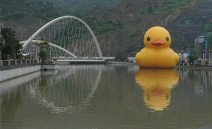 另據(jù)工人日報消息,近日,由荷蘭藝術家弗洛倫泰因•霍夫曼設計監(jiān)制的大黃鴨首次亮相貴州省貴陽市。按原計劃,大黃鴨將在該市的南明河上亮相至8月24日。然而,7月16日,有網(wǎng)友突然發(fā)現(xiàn)黃鴨不見了,并懷疑是被連續(xù)下的暴雨沖走了。目前,活動主辦方?jīng)Q定重獎全城尋找大黃鴨。(本報記者李豐)