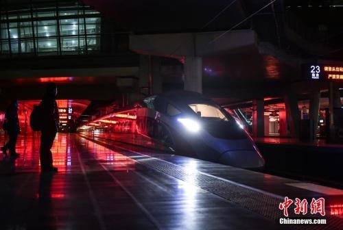 資料圖:今年2月,京津城際首趟“復(fù)興號(hào)”開(kāi)路車(chē)從北京南站正式啟程。中新網(wǎng)記者 翟璐 攝