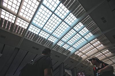 7月9日,北京南站,候車大廳玻璃使用了納米材料涂層,給室內(nèi)降溫。本版攝影 記者 王貴彬