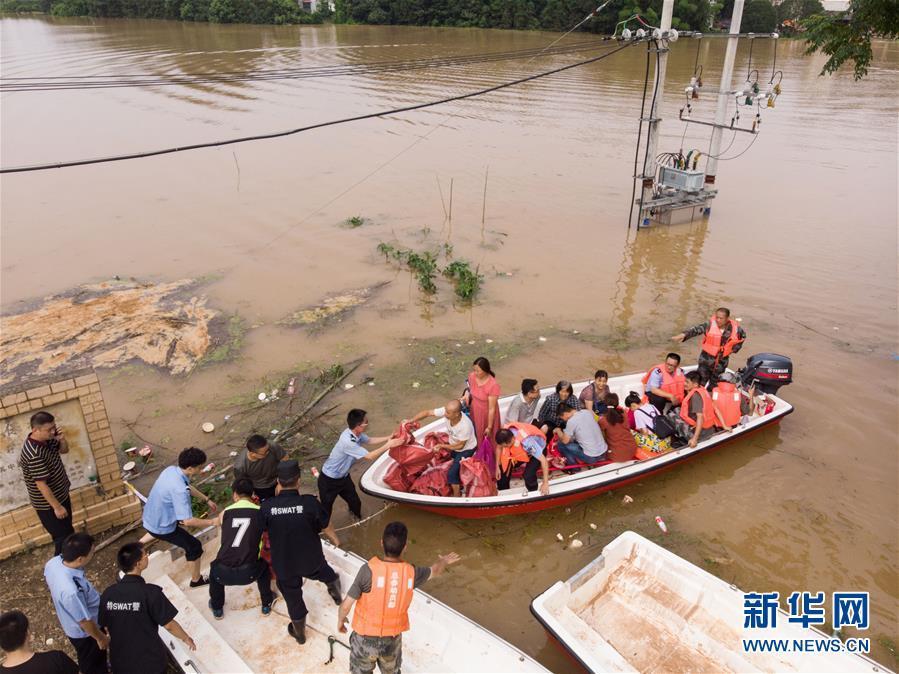 7月10日,湘江大堤湖南衡山縣長(zhǎng)江鎮(zhèn)曹家湖段出現(xiàn)漫堤決口,衡山縣人武部迅速集結(jié)專業(yè)救援隊(duì)伍,對(duì)群眾進(jìn)行救援(無人機(jī)拍攝)。新華社發(fā)(陳思汗 攝)