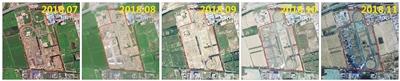 一個(gè)典型的建筑施工地塊動(dòng)態(tài)變化遙感監(jiān)測(cè)圖。北京市環(huán)境保護(hù)監(jiān)測(cè)中心遙感室供圖