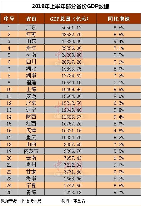 摘要:各地上半年經(jīng)濟(jì)成績(jī)單陸續(xù)出爐。據(jù)不完全統(tǒng)計(jì),截至7月26日,至少有25個(gè)省份公布了2019年上半年GDP數(shù)據(jù)。上半年GDP總量、GDP增速、居民收入...
