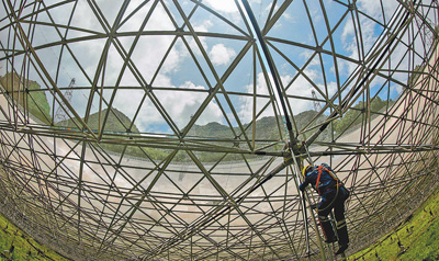 8月28日,工作人員在對“中國天眼”進行檢修。