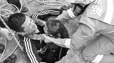 湖南婁底市雙峰縣消防大隊工作人員李維琪22日告訴北青報記者,消防人員趕到后,王育永和孩子已經(jīng)幾乎到達了井口的正下方,消防人員想接過小鵬,但是小鵬當時或是因為受到了驚嚇,一直緊緊地抱著王育永的脖子不肯松開,“我們看到孩子這種情況,考慮到不要嚇到孩子,便也沒有強求,但是為了保證兩個人的安全,就給他們佩戴了安全繩進行了保護。”