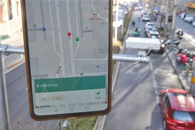 昨日,記者使用新版北京交通APP新增的空余車位導(dǎo)航功能在海淀區(qū)蘇州街內(nèi)找到一個(gè)空余車位。新京報(bào)記者 王貴彬 攝