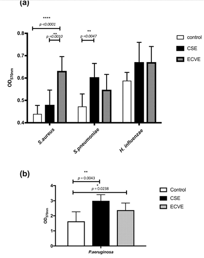 香煙煙霧(CSE)和電子煙蒸汽(ECVE)對生物膜的影響。