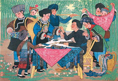 湘西苗族老藝人(年畫)周令釗、陳若菊繪 中國美術(shù)館藏