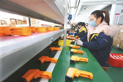 作為一家生產(chǎn)儀器儀表和紅外測溫設(shè)備的企業(yè),安徽馬鞍山川宇電子有限公司提前結(jié)束休假,復工復產(chǎn)。目前,該公司紅外測溫槍生產(chǎn)線已開足馬力,日產(chǎn)量達1000臺左右。圖為1月31日,川宇電子的紅外測溫設(shè)備生產(chǎn)線上,工人們正在緊張作業(yè)。 |