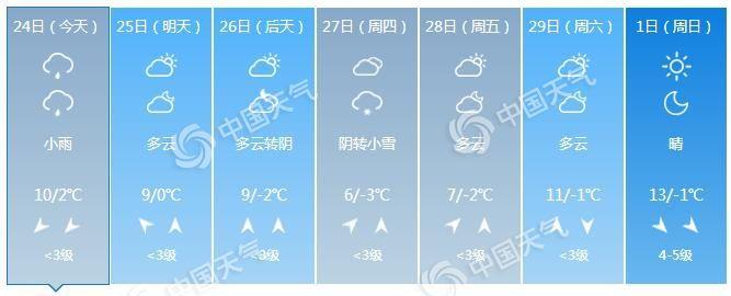 北京市氣象臺(tái)預(yù)計(jì),今天白天北京天氣多云轉(zhuǎn)陰,東部、南部有小雨,夜間降雨范圍有擴(kuò)散的趨勢,大部地區(qū)陰有小雨,山區(qū)或?qū)h落雪花;最高氣溫10℃,最低氣溫2℃。