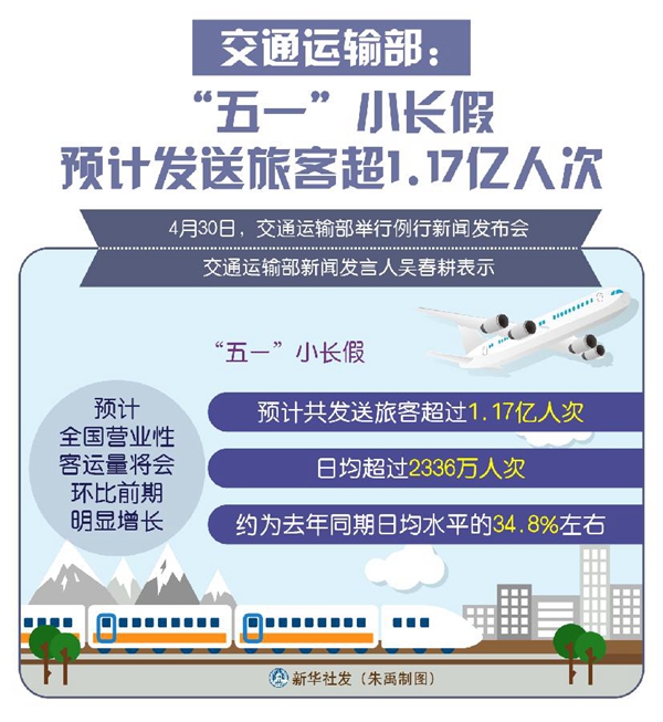 吳春耕介紹,預(yù)計(jì)“五一”期間,全國(guó)營(yíng)業(yè)性客運(yùn)量環(huán)比將出現(xiàn)明顯增長(zhǎng),預(yù)計(jì)共發(fā)送旅客超過(guò)1.17億人次,日均超過(guò)2336萬(wàn)人次,約為去年同期日均水平的34.8%左右。