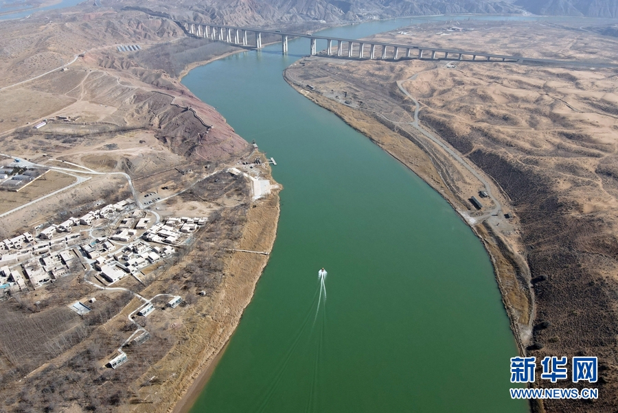 黃河流經(jīng)寧夏中衛(wèi)市沙坡頭區(qū)(2021年3月3日攝,無人機(jī)照片)。新華社記者 唐如峰 攝