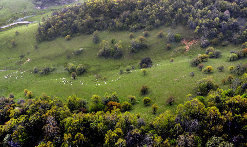 2021年5月4日拍攝的陜西隴縣關(guān)山草原旅游風(fēng)景區(qū)一角(無(wú)人機(jī)照片)。新華社記者 陶明 攝