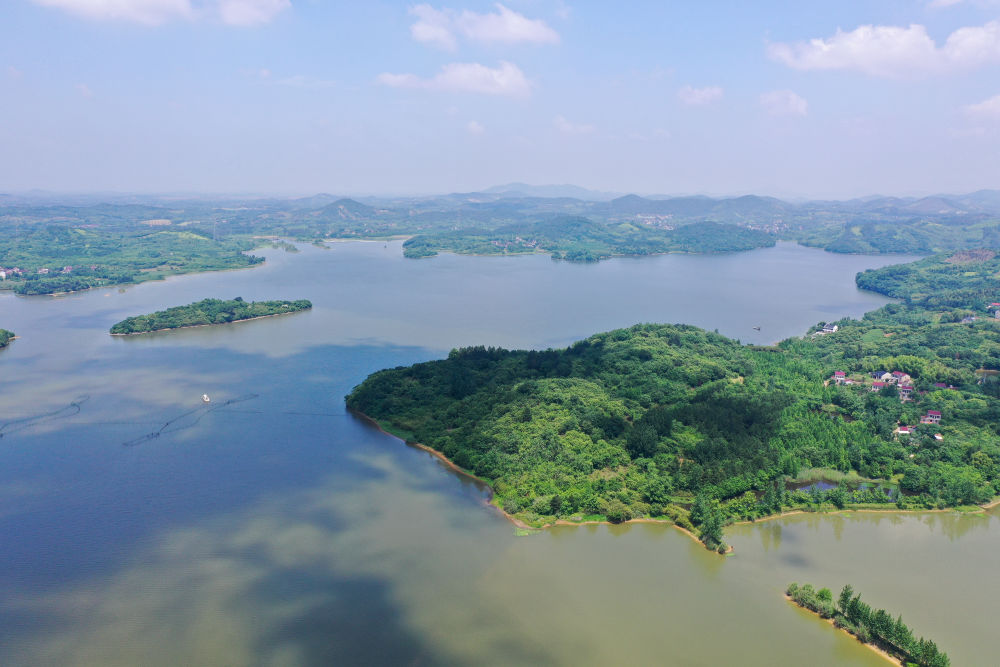2021年5月17日拍攝的江蘇溧陽(yáng)天目湖景色(無(wú)人機(jī)照片)。新華社記者 季春鵬 攝
