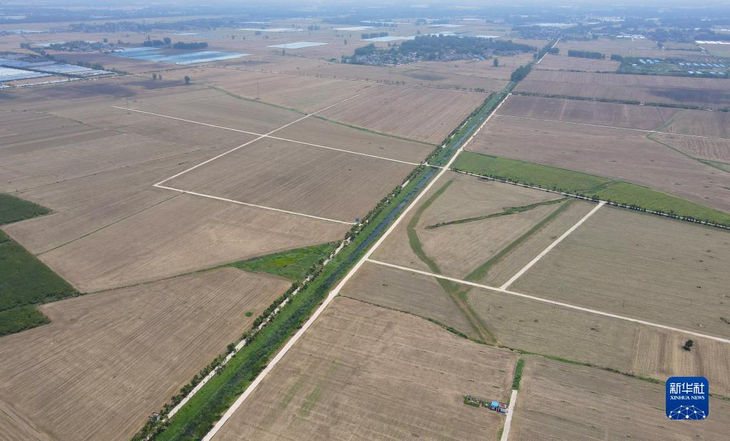 這是6月28日拍攝的安徽省阜陽(yáng)市太和縣淙祥現(xiàn)代農(nóng)業(yè)種植專(zhuān)業(yè)合作社(無(wú)人機(jī)照片)。新華社記者 周牧 攝