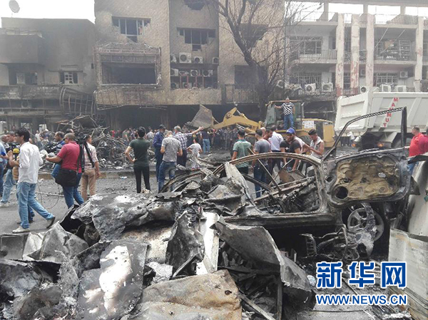 這是7月3日在伊拉克首都巴格達(dá)卡拉達(dá)區(qū)拍攝的被炸毀的車(chē)輛和建筑。新華社發(fā)(哈利勒·達(dá)烏德攝)
