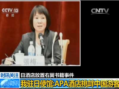 中國駐日本大使館新聞發(fā)言人張梅25號在例行記者會上強(qiáng)調(diào):日本APA酒店在客房內(nèi)放置否認(rèn)南京大屠殺書籍一事的實質(zhì)是,“日本國內(nèi)一些勢力始終不愿意正視歷史”,并表示“絕不容忍歪曲歷史、傷害中國人民感情的公然挑釁行為”,敦促日方以正確的歷史觀教育國民,以實際行動取信于亞洲鄰國和國際社會。