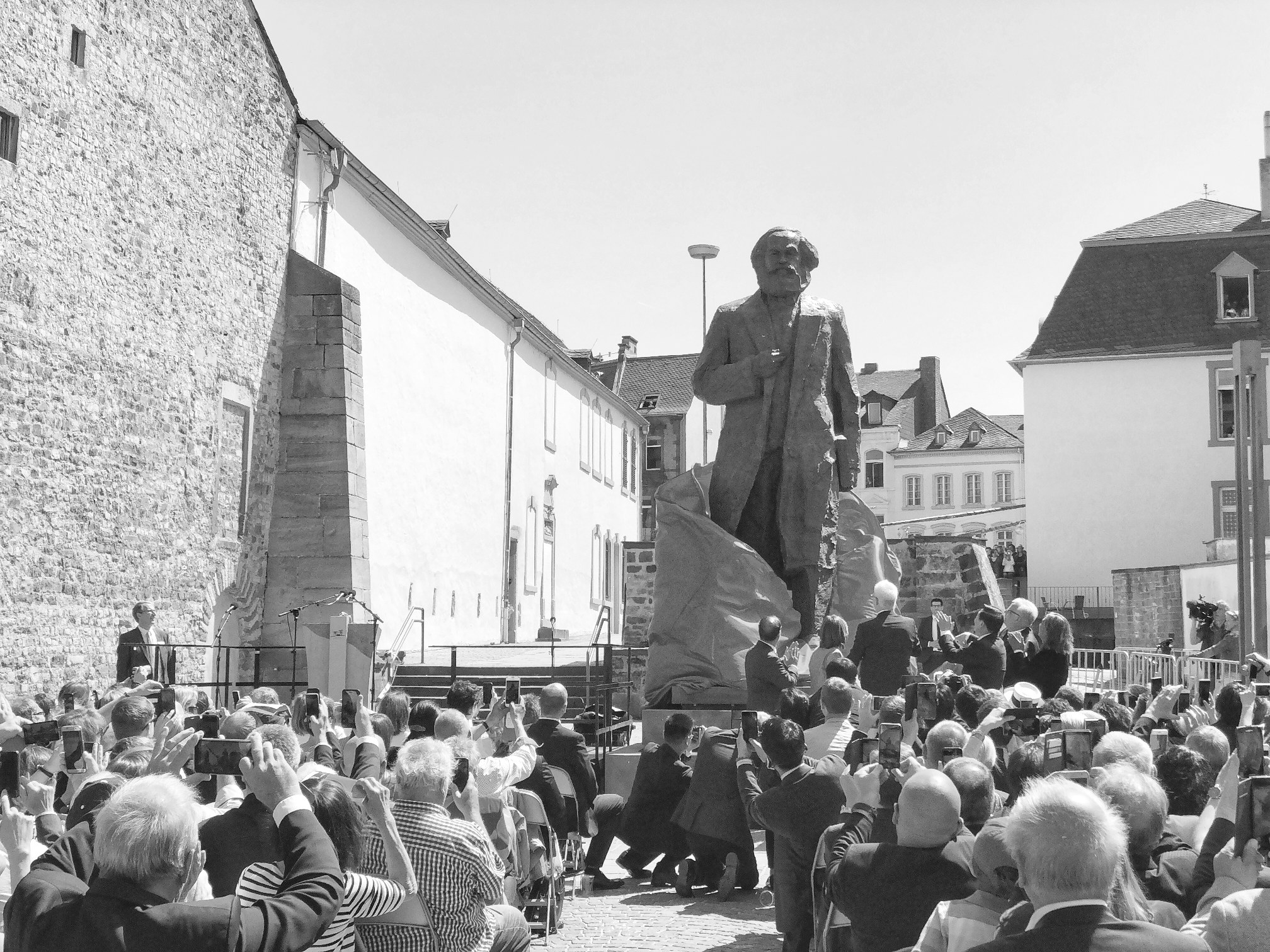 馬克思雕像所在的西蒙廣場位于特里爾老城內(nèi),距馬克思度過青少年時期的西蒙街故居僅咫尺之遙。雕像展現(xiàn)的是手捧書籍、正在行走的馬克思形象,總高5.5米和他的生日日期契合。當(dāng)天,中國國務(wù)院新聞辦副主任郭衛(wèi)民、中國駐德國大使史明德和雕像作者吳為山、特里爾市市長萊布等共同為雕像揭幕。